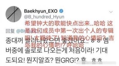 据悉,张艺兴在金钟大之前出过个人专辑。有边伯贤粉丝解释道,边伯贤指的是目前参团成员中的第一个solo。另外在上星期直播中边伯贤还回复粉丝评论的“长沙”说“是lay的故乡”。