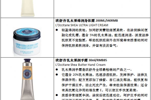 欧舒丹不断以天然成份,制造优质的身体护理、手部护理、头发护理、面部护肤及家居系列。品牌素来重视环保与珍爱自然,并在产品研发方面坚守原则,致力选用天然及具有质量保证的成份。欧舒丹的乳木果护肤系列,就是起始于1980年品牌与布基纳法索开展的乳木果平等贸易关系项目,并且该项目一直延续至今。欧舒丹将乳木果油的神奇护肤功效,研制成全系列优质的护理护肤产品,温润的乳木果油为肌肤带来温和备至的滋养润泽,乳木果油也成为欧舒丹产品中最具代表性的核心成分之一。 2018年10月,亚洲实力偶像鹿晗,再次温暖亮相于法国天然植物护肤品牌欧舒丹平面海报——欧舒丹乳木果系列:与光同行,为爱“手”护。在雪花飘舞中,身着温暖毛衣的鹿晗手持欧舒丹乳木果绵润护手霜,在这日渐寒冷的里,用心为爱“手”护,将暖意绵绵的欧舒丹乳木果系列带给大家。