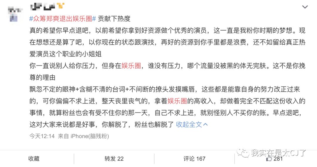 现在微博上已经有人刷起了#众筹郑爽退出娱乐圈#的话题。