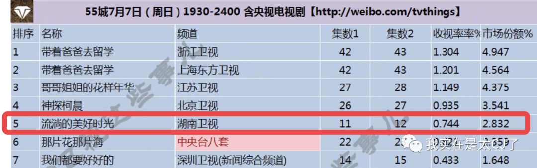 一般人其实不太会在意这类数据,但别忘了这个世界上还个群体叫做“卫视粉”…… 看着《少年派》好不容易把湖南卫视的整体收视从相对低迷带到打出一片日冠江山,却又因为《流淌的美好时光》重新坠落,“芒果粉”们肯定是气不过的。
