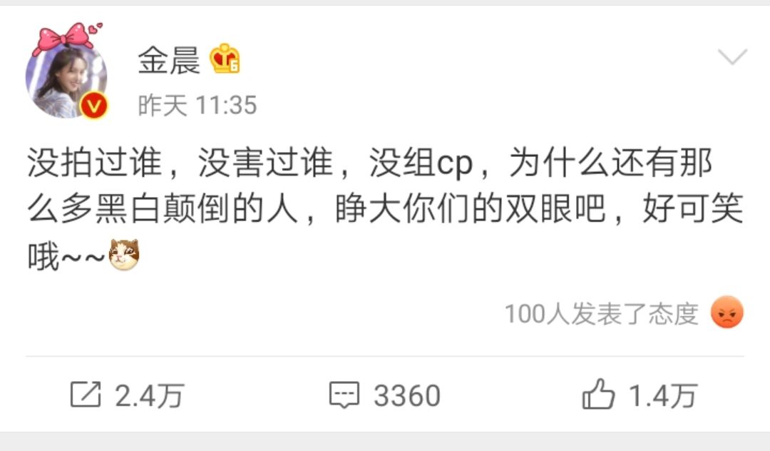 | 金晨回应内涵邓伦事件,称:没害过谁,别颠倒黑白! |