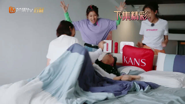 三个人跑到床前大叫“张晋”,陈芊芊还自觉配合上了“surprise”的动作,成功把张晋从睡梦中叫(xia)醒,看这惊恐的小眼神就知道张晋的心理阴影面积有多大了。