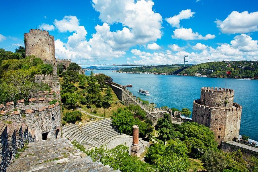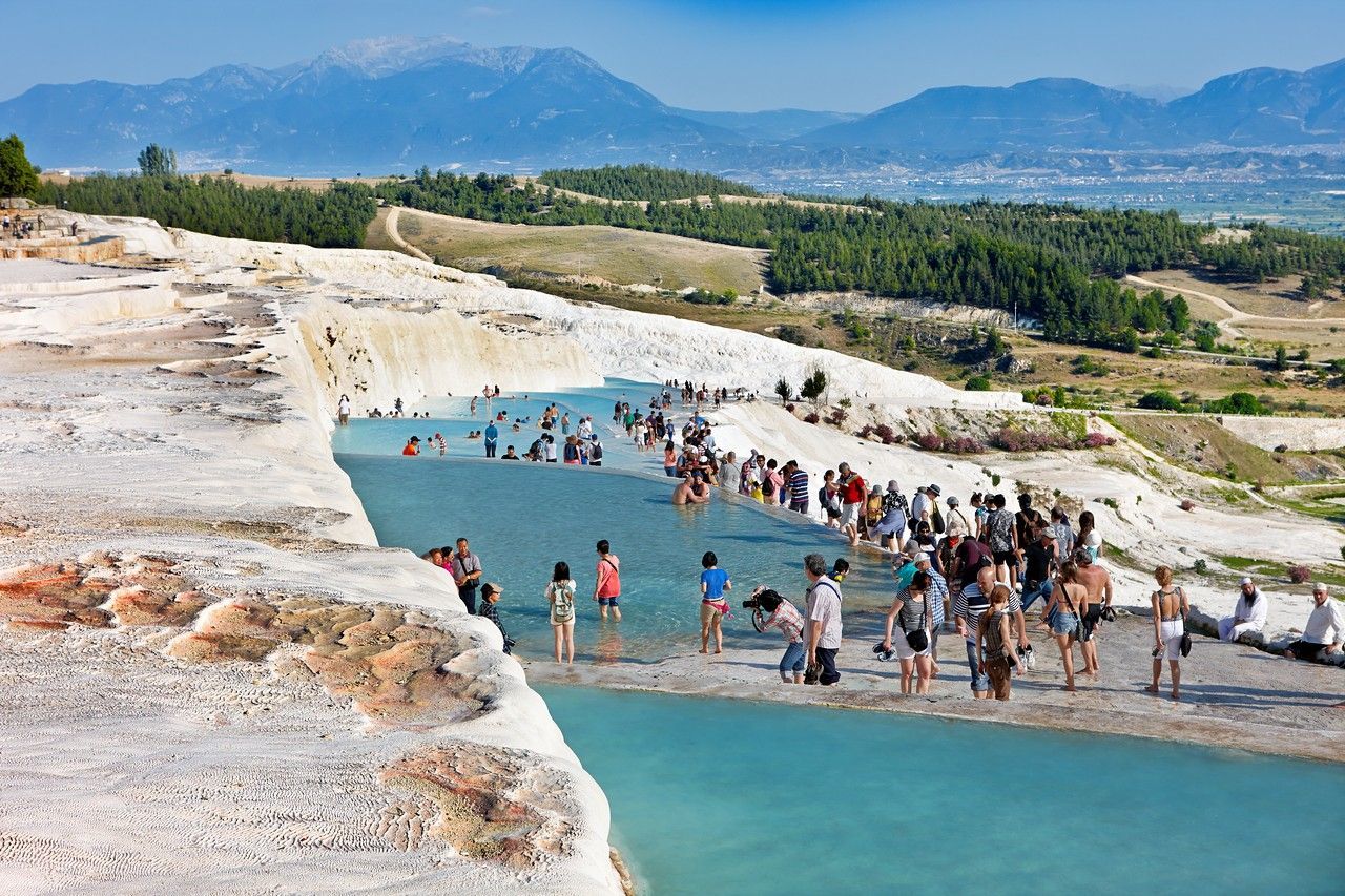 土耳其阿克萨拉伊,一种名为盐生杜氏藻的喜盐海洋微藻覆盖盐湖部分水域,使盐湖的颜色变为红色。 东西方文化交流碰撞之地,不朽的清真寺,熙熙攘攘的集贸市场记录的是其千年历史的脚步。 土耳其梅乌拉那博物馆 博斯普鲁斯海峡(伊斯坦布尔海峡)是欧洲与亚洲之界,长约30公里,最宽处宽约3700米,最窄处宽约700米。它北连黑海,南通马尔马拉海,海峡两岸树木葱郁,风景绮丽。 棉花堡在土耳其的纺织工业重镇Denizli,位于西南部山区,距离伊兹密尔约二百公里。此地不仅有上千年的天然温泉,更有古怪的好似棉花一样的山丘。色白如棉,远看像棉花团,其实是坚硬的石灰岩地形。洁白的台阶像层层梯田依山而下,暖暖的温泉水顺着山坡潺潺流淌,平台处蓄水成塘,一汪汪湛蓝的泉水像翡翠嵌在座座白玉台上,犹如披着水衫的仙女在阳光下曼妙起舞。 土耳其卡帕多西亚。在这里,自然的伟大力量锻造出了世上独一无二的神奇地貌。几百万年前的火山喷发喷出的大量岩浆冷却、钙化,凝固成的风化岩层具有良好的可塑性,形成了天然的奇特地貌。徒步穿越卡帕多奇亚繁多的峡谷是探寻那些壮观岩窟教堂的最好方式。格雷梅周围的白色峡谷、玫瑰峡谷、鸽子峡谷和爱情峡谷都是冒险家的至爱。 土耳其安塔利亚省,西戴古城遗址 卡帕多西亚 土耳其卡帕多奇亚地区,精灵烟囟