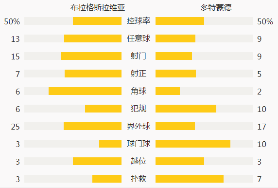 发布时间:2019/10/9 阅读: 次 北京时间10月3日凌晨0:55分,欧冠小组赛F组次轮,多特蒙德客场对阵布拉格斯拉维亚。上半场比赛,阿什拉夫为多特打破僵局,半场结束大黄蜂1-0领先;下半场,阿什拉夫再进一球,最终多特蒙德凭借阿什拉夫双响2-0顺利战胜布拉格斯拉维亚,全取三分。 多特蒙德上轮联赛主场2-2遗憾被不莱梅逼平,目前已经掉到积分榜第7位,而在欧冠赛场,此前和巴萨战平的多特蒙德仍需力争更多的积分,在小组当中获得出线优先权。首发方面,多特做出了部分人员调整,胡梅尔斯坐镇后防,罗伊斯、桑乔领衔锋线。 比赛开始,第1分钟,格雷罗右路角球开出,桑乔接应后起脚传中,皮球被门将出击拿到。第7分钟,格雷罗左路传中,罗伊斯禁区外围起脚远射被防守球员挡出。第14分钟,奥莱因卡禁区外围做球,斯坦丘接球后的远射稍稍偏出底线。 第17分钟,桑乔禁区内右路乱战中斜传,阿什拉夫推射远角偏出一些。第21分钟,特茨前场中路突破进禁区后起脚打门,皮球被布尔基挡出后解围出去。第22分钟,皮什切克后场拼抢抬脚过高被出示黄牌。 第24分钟,布拉格斯拉维亚任意球机会,斯坦丘直接攻门被布尔基扑出底线。第26分钟,布兰特送出直塞,皮什切克右路跟进得球后传中,罗伊斯包抄没能碰到皮球。第33分钟,波里尔送出直传,斯坦丘左路跟进后的挑传被布尔基拿到。 第35分钟,多特率先取得进球!布兰特送出挑传,阿什拉夫右路长驱直入连过后卫门将一条龙破门,多特1-0领先! 第39分钟,阿什拉夫前场左路得球突破至禁区后与门将科拉尔接触倒地,裁判判罚其进攻犯规。第42分钟,奥莱因卡禁区右路横传,斯坦丘中路起脚打门被挡出。上半场补时3分钟,第45分钟,赛夫奇克拉拽阿什拉夫犯规被出示黄牌。 半场结束,多特蒙德暂时凭借阿什拉夫的进球1-0领先布拉格斯拉维亚。 下半场开始,第47分钟,多特反击机会,布兰特右路长传,桑乔前场得球后带球过大,皮球被科拉尔出击拿到。第49分钟,特茨禁区外围的打门被布尔基拿到,随后霍沃卡冲撞门将吃到黄牌。第56分钟,多特任意球机会,前场右路双方拼抢,皮球被防守队员解围出去。 第62分钟,塞夫奇克前场右路送出长传球找马索普斯特,布尔基及时出击把球拿到。第67分钟,范布伦直传被胡梅尔斯解围不远,塞夫奇克外围右侧的打门被布尔基拿到。第70分钟,多特反击机会,阿什拉夫中场右路的传中被科拉尔拿到。 第71分钟,斯坦丘禁区外的打门被挡出,随后塞夫奇克的补射稍稍偏出底线。第74分钟,多特换人,小阿扎尔上场换下桑乔。第77分钟,德莱尼送出直塞,罗伊斯左路得球,可惜接球时越位在先。 第81分钟,阿什拉夫右路突破进禁区后起脚抽射被扑出,随后球被防守队员解围。第83分钟,波里尔左路边线附近送出传中,后点范布伦的头球稍稍偏出。第88分钟,格雷罗分球,罗伊斯禁区右路跟进起脚的打门出了底线。 第89分钟,阿什拉夫梅开二度!布兰特中场送出斜传,阿什拉夫左路跟上突破进禁区后起脚打门,皮球应声入网!多特2-0锁定胜局。 全场比赛结束,多特蒙德凭借阿什拉夫的两粒进球在主场2-0战胜布拉格斯拉维亚。 双方出场阵容: 多特蒙德:1-布尔基、26-皮什切克、15-胡梅尔斯、16-阿坎吉、13-格雷罗、5-阿什拉夫(第90分钟2-扎加杜)、25-维特塞尔、6-德莱尼、19-布兰特(第92分钟10-格策)、11-罗伊斯、7-桑乔(第74分钟23-小阿扎尔) 布拉格斯拉维亚:1-科拉尔、5-库法尔、15-库德拉、2-霍沃卡、18-波里尔、22-苏塞克、23-塞夫奇克、9-奥莱因卡、7-斯坦丘(第83分钟21-斯科达)、28-马索普斯特(第75分钟12-泽勒尼)、11-特茨(第59分钟14-范布伦) 双方技术统计: