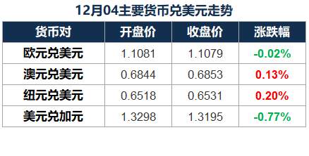 注:涨跌幅=(当日收盘价-前一日收盘价)/前一日收盘价 市场热点摘要: 美元新闻: 寻汇早报:就业数据爆冷,美指连续收跌 昨日美国公布11月ADP就业人数,仅录得大幅低于预期的6.7万人,同时ISM非制造业PMI也不及预期值,经济数据疲软情况下美元指数连续第五日收跌。 美国购物假期期间消费增加 全美零售商联合会表示,美国感恩节购物季消费者人均支出同比增16%,假日周末在网络和实体店购物的美国消费者数量创纪录新高,人均支出也有增加。 人民币新闻: 人民币汇率止跌回暖升值 寻汇了解到受到近两日全球外部压力影响,昨日央行大幅下调人民币中间价159个点报于7.0382,不过昨日人民币汇率在贸易利好消息下有所回暖,升值至7.05左右。 中国财新服务业数据向好 昨日中国公布11月财新服务业PMI录得高于预期的53.5;在本周服务业和制造业双双向好之际,中国经济呈现企稳回暖势头,企业信心没有明显改善。 其他货币新闻: 加拿大央行维持利率不变 昨日加拿大央行公布最新货币政策,将利率维持在1.75%不变;加拿大央行认为稳定的利率帮助经济维持平衡,加拿大经济料保持韧性,加元出现明显升值。 日本服务业重回温和成长 日本服务业活动11月重返增长,在10月曾出现三年来的首次萎缩,但寻汇分析在日本经济处于衰退边缘之际,服务业整体动能仍不确定。 澳大利亚经济增长现回暖 澳大利亚统计局昨日公布数据显示,2019年第三季度澳经济增长0.4%,虽低于预期,不过预示澳经济增长速度摆脱了10年低水平的1.4%,提升至1.7%。 今日重点数据关注: 18:00 欧元区第三季度GDP年率 21:30 美国当周初请失业金人数 来源:该文章转自搜狐财经新闻,如有侵权请联系删除 |