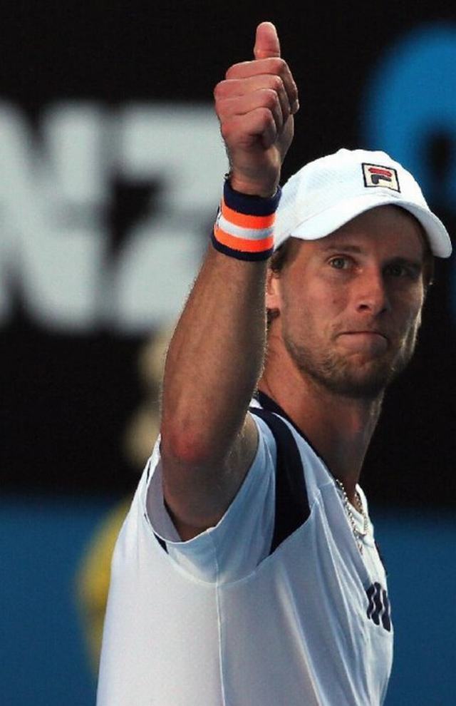 1月23日,塞皮赛后庆祝。当日,在墨尔本举行的2015年澳大利亚网球公开赛男单第三轮的比赛中,瑞士选手费德勒1比3不敌意大利选手塞皮,无缘十六强。